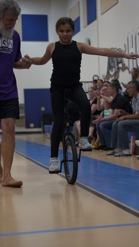 School of Quintessence: A new Waldorf micro-school, “SoQ”, has us meeting with all three of their classes during the school day on Mondays. Unicycling and stilt-walking are favorites with many of the kids there.