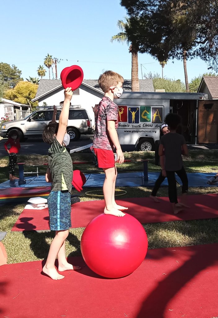Arizona Women’s Recovery Center (June 2023) — The children of the clients of the Women’s Recovery Center and the children of the staff and all the parents came together like family to collaborate with PYCA on a circus camp just for them!
